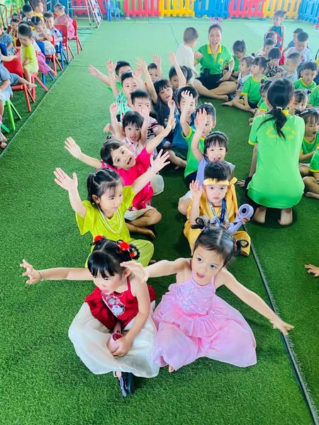 Trên sân khấu rực rỡ sắc màu, các bé diện những bộ trang phục xinh tươi, tự tin biểu diễn, ca hát và nhảy múa trong tiếng vỗ tay cổ vũ của cô giáo và bạn bè. Những ánh mắt ngây thơ, nụ cười hồn nhiên ấy chính là niềm vui lớn nhất của cô và nhà trường. 💖