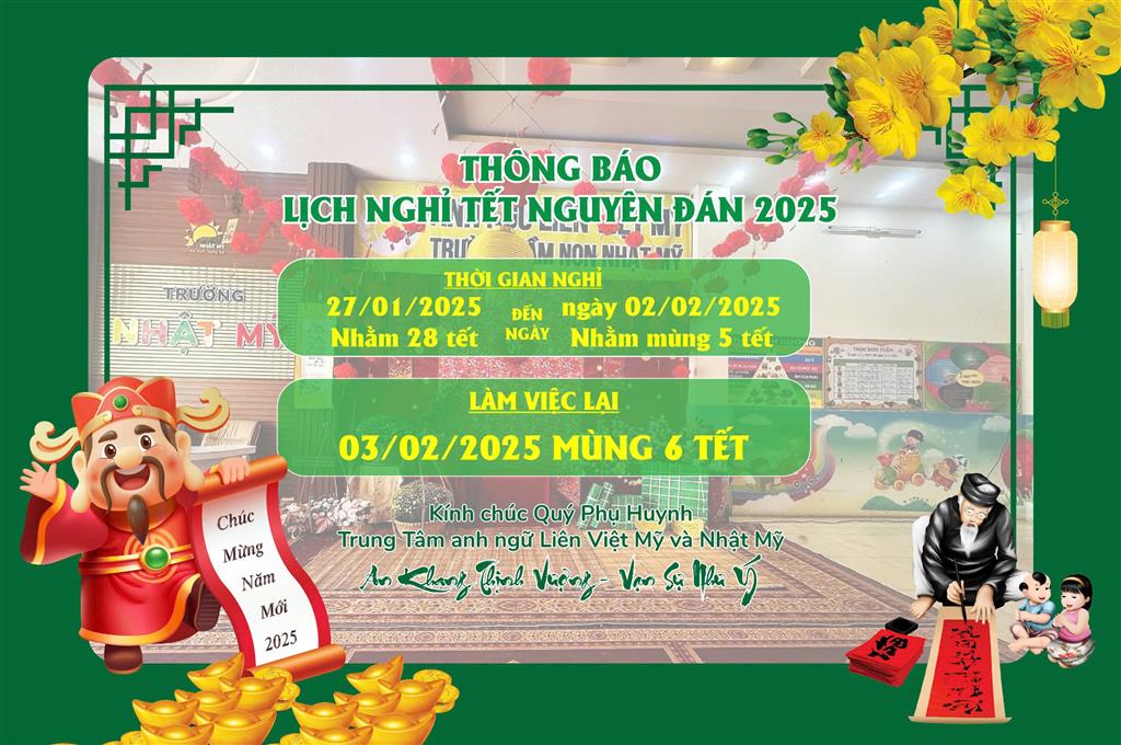 TRƯỜNG MẦM NON NHẬT MỸ - TRUNG TÂM ANH NGỮ LIÊN VIỆT MỸ THÔNG BÁO LỊCH NGHỈ TẾT 2025